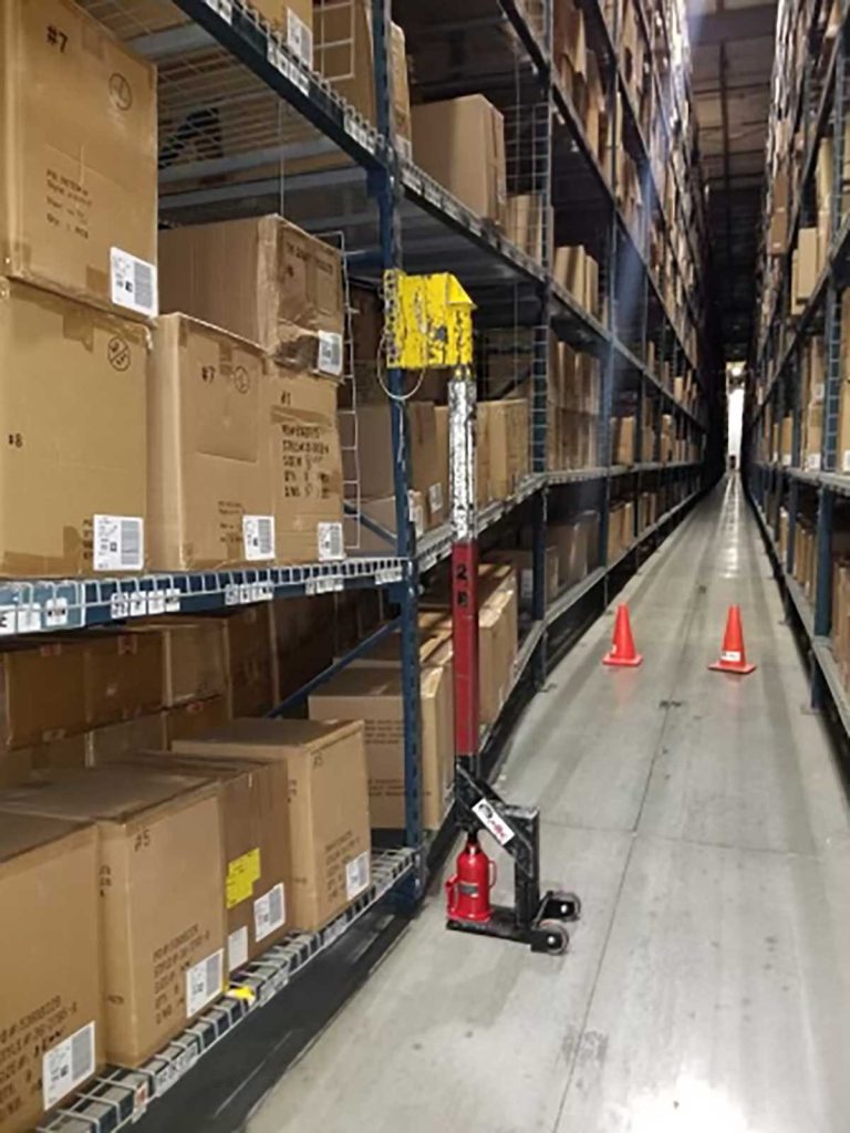 Once shipped to the site, our team of trained service technicians return to the site to install each kit using our procedures and protocols. We deploy a series of jack systems, many we personally pioneered to minimize the need for operations to be involved in unloading or loading their goods from the racks. While there are certain situations that do require operations to be involved, we prefer to minimize their role in our efforts. A typical repair can be completed in an hour or less.  a damaged upright can take a half-day to a full day of effort by a team of capable people. The savings of time and money is obvious.